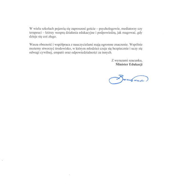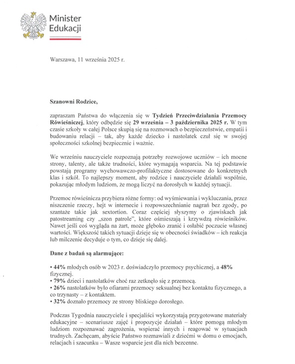 TYDZIEŃ O PRZECIWDZIAŁANIU PRZEMOCY RÓWIEŚNICZEJ Zdjęcia Załączniki Dla rodzica ścieżka pomocy w przypadku przemocy rówieśniczej [497.85 kB] Dla szkoły ścieżka pomocy w przypadku przemocy rówieśniczej [499.96 kB] Dla ucznia ścieżka pomocy w przypadku przemocy rówieśniczej [446.69 kB] EBOOK Bullying jak go okreslic DZIECI WIEK 12 18 [2.67 MB] EBOOK Cyberprzemoc ebook dla nastolatkow 14 18 i rodzicow [3.01 MB] EBOOK Sila wiezi rodzinnych dla rodzicow dzieci w wieku 5 12 [6.19 MB] Zobacz również NARODOWE CZYTANIE JANA KOCHANOWSKIEGO UBEZPIECZENIE NW UCZNIÓW W ROKU SZKOLNYM 2025/2026 INFORMACJA DLA RODZICÓW DOTYCZĄCA MOŻLIWOŚCI WYDANIA... TYDZIEŃ O PRZECIWDZIAŁANIU PRZEMOCY RÓWIEŚNICZEJ TYDZIEŃ BUDOWANIA RELACJI BEZPŁATNE ZAJĘCIA Z JĘZYKA ANGIELSKIEGO - HARMONOGRAM... 28 września 2025 Aktualności Wydrukuj Udostępnij Wyświetlono: 12