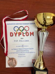 Drużyna z PSP Policzna, pod opieką pani Olgi Adamiec, wykazała się znakomitą formą, ogromnym zaangażowaniem i wolą walki. Dzięki świetnej współpracy i taktyce wywalczyły brązowy medal, meldując się na podium jako trzecia najlepsza drużyna południowego Mazowsza w swojej kategorii wiekowej.