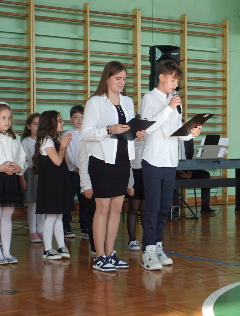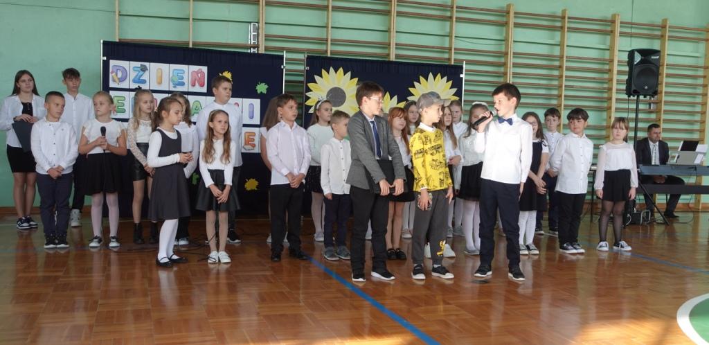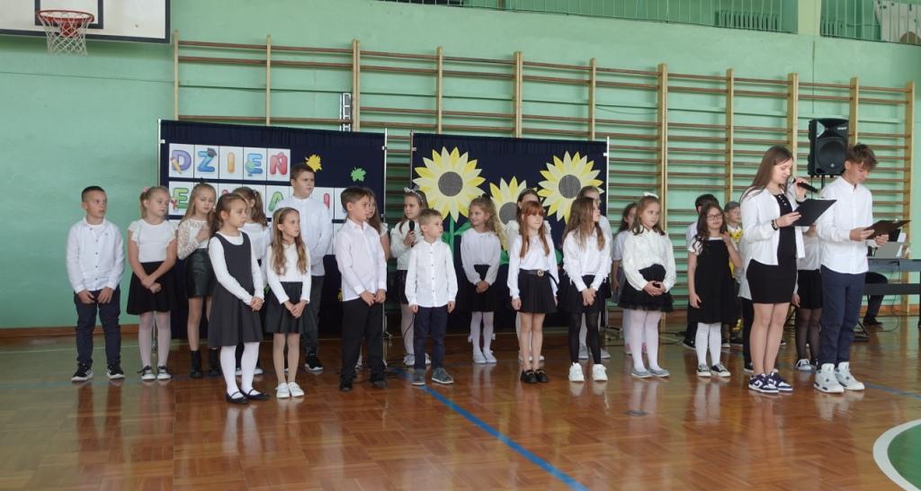 W dniu 13 października 2025r. Dzień Edukacji Narodowej świętowała Publiczna Szkoła Podstawowa w Policznie. Przedstawiciele Samorządu Uczniowskiego serdecznie powitali zaproszonych gości: Panią Dyrektor Jolantę Kalinowską, Panią Wicedyrektor Beatę Wdowiak, Przewodniczącego Rady Gminy Pana Pawła Jędrę, Sekretarza Urzędu Gminy Pana Roberta Strzeleckiego, Przewodniczącą Rady Rodziców Panią Olgę Wójcik, nauczycieli, pracowników obsługi i administracji, uczniów oraz rodziców. Następnie wszyscy mieli okazję obejrzeć akademię, która była kulminacyjnym punktem programu. Montaż słowno-muzyczny został przygotowany przez uczniów klas drugich i trzeciej pod opieką nauczycieli: Małgorzaty Wróbel, Barbary Głowackiej, Elżbiety Czerskiej i Tomasza Kubiaka. Uczniowie w ten sposób wyrazili swoją wdzięczność za trud włożony w wychowanie i edukację, a wszyscy nauczyciele i pracownicy szkoły otrzymali od nich kwiaty. Następnie głos zabrali: Pani Dyrektor Jolanta Kalinowska, Pan Paweł Jędra i Pani Olga Wójcik. W pięknych słowach podziękowali nauczycielom za cierpliwość, ogromne serce oraz możliwość rozwijania pasji i zainteresowań. Ważnym i miłym akcentem tej uroczystości było wręczenie Nagrody Wójta Gminy Policzna i Nagrody Dyrektora wyróżniającym się nauczycielom oraz pracownikom administracji i obsługi. Wyróżnieni otrzymali gromkie brawa. Uroczystość przebiegła w miłej, pełnej życzliwości atmosferze.